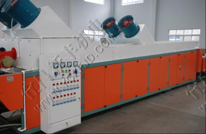 熱風機換能器單獨布置,提高熱效率,經干燥后的熱風經過風機加速直接送進干燥道,通道內空氣濕度低于25%,溫度不均勻度不超過±2℃。柴油燃燒機采用意大利產品,提高了干燥系統運行的可靠性。采用高穩定性的溫度控制器和傳感器,克服了普通控制器不穩定帶來的溫度慣性和漂移,最終使干燥道溫度恒定在設定范圍內(建議設定值:上限為30℃,下限為26℃)。