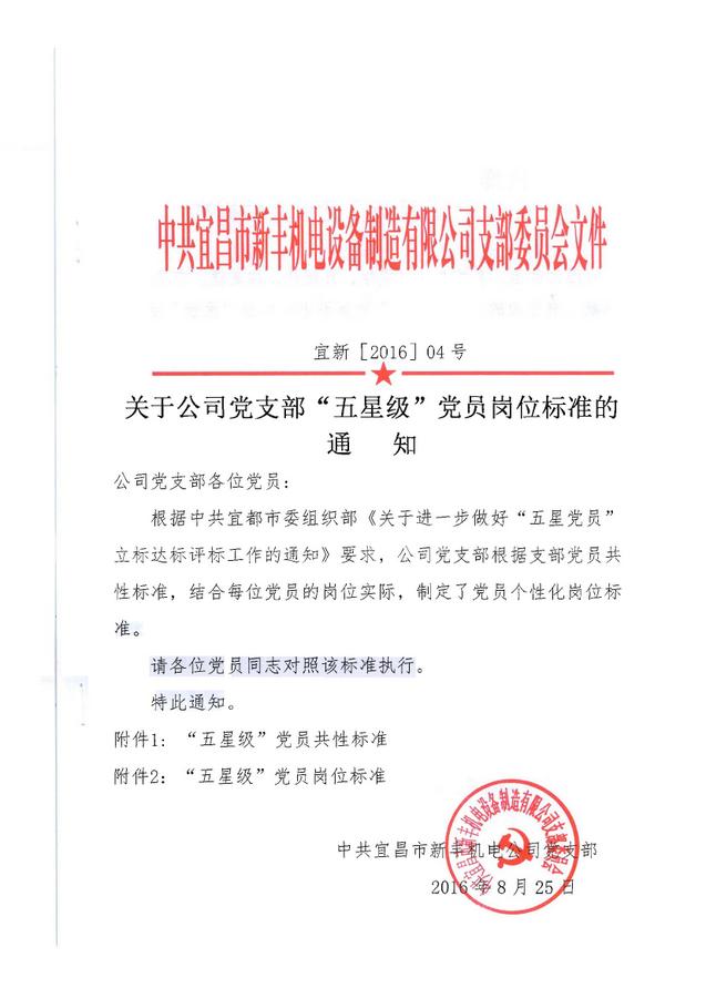 關于公司黨支部“五星級”黨員崗位標準的通知